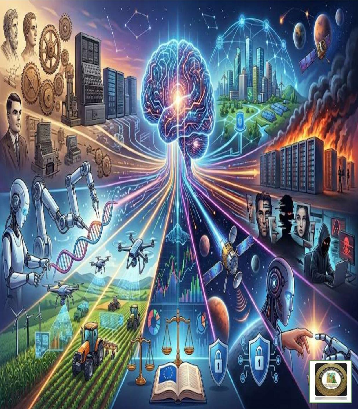 تقدم هذه الدراسة البحثية الموسعة تحليلاً نقدياً وعلمياً شاملاً لمجال الذكاء الاصطناعي (Artificial Intelligence)، والذي يُمثل قمة الهرم في الثورة الصناعية الرابعة. لا تقتصر هذه الدراسة على استعراض السطح التقني، بل تغوص في الجذور التاريخية والفلسفية التي مهدت لظهور هذه التكنولوجيا. يتم تفكيك البنية التحتية الخوارزمية للذكاء الاصطناعي، بدءاً من النماذج الإحصائية لتعلم الآلة وصولاً إلى المعماريات المعقدة للشبكات العصبية والتعلم العميق. وتستعرض الدراسة بأسلوب تحليلي التطبيقات القطاعية في الطب، الزراعة، الاقتصاد، والصناعة، مع تقديم دراسات حالة مبسطة لتوضيح الأثر الفعلي. في المقابل، تُفرد الدراسة مساحة واسعة لتشريح المعضلات الأخلاقية، وتختتم بتقديم رؤية استشرافية للتقنيات الناشئة مشددة على حتمية تطوير أطر حوكمة دولية صارمة.